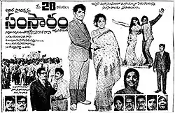 Samsaram (transl. Family) is a 1975 Indian Telugu-language drama film, produced and directed by T. Prakash Rao under the Anil Productions banner.[2] It stars N. T. Rama Rao and Jamuna.[3] The music was composed by T. Chalapathi Rao.[4]