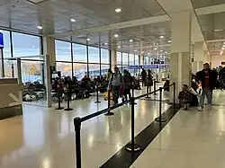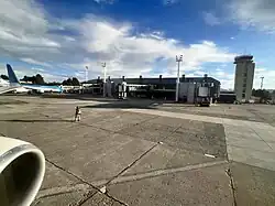 San Carlos de Bariloche Airport (Spanish: Aeropuerto de San Carlos de Bariloche) (IATA: BRC, ICAO: SAZS), also known as Teniente Luis Candelaria Airport,[5] is an international airport serving the city of San Carlos de Bariloche, Río Negro, Argentina. The airport covers an area of 1,810 hectares (4,500 acres; 7.0 sq mi) and has a 12,000-square-metre (130,000 sq ft) terminal; it is located 13 kilometres (8.1 mi) out of the city.[2]