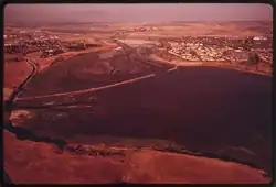 During the 1930s the area around the mouth of San Diego Creek was developed extensively for salt production, with numerous evaporating ponds in the Upper Newport Bay Salt Works.[30] In 1932 the Irvine Conservation Dam, an earthen structure 27 feet (8.2 m) high, was built across San Diego Creek a mile (1.6 km) above the mouth, to capture storm runoff for irrigation, as well as provide flood protection to the salt works. The dam was removed in 1963. Severe flooding in 1969 destroyed the salt works and subsequent floods filled much of the bay with sediment. After a proposal to turn the area into a yacht harbor in the 1970s was thwarted by conservation groups, the bay is now a protected wetlands area.[24][31]