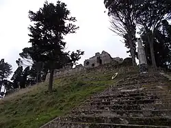 The Castle of San Giorgio Morgeto was built in the 9th or 10th century AD on the summit of a rocky peak near the settlement. It is one of the few examples of High Medieval Calabrian architecture and one of the few fortifications in the region to have undergone restoration work. Even today it dominates the plain of Gioia Tauro from the Tyrrhenian Sea to Capo Vaticano, with a view of Stromboli and the Aeolian Islands. Local legend attributes the original fortification to the mythical King Morges of the Morgetes, son of Italus.[22] Morges' shade or ghost is meant to appear on the walls from time to time.[23]