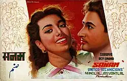 Sanam is a 1951 Bollywood romantic film directed by Nandlal Jaswantlal, who also directed the classic Anarkali.[1] It starred Dev Anand, and his co-star was Suraiya, who also recorded the playback singing for the film. Meena Kumari acted in the film in a supporting role, where she played the role of Suraiya's best friend.[2] The film was an average at the box office, which was attributed to Suraiya's fading stardom in the early 1950s, and Madhubala's and Nargis' simultaneous rise as the top female stars.[3]