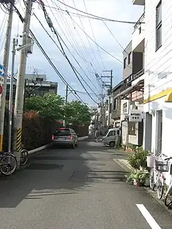 In the northern part of the street, separated by Higashi and Nishi Sanbongi-dōri, in the small residential block, is the Jōdo Buddhist temple Entsū-ji (円通寺/圓通寺), surrounded by historical houses.[5] Thus, several traditional townhouses and longhouses are on the street, which has retained a historical charm.[1][3] However, the northern part of the street is more urban.[3]