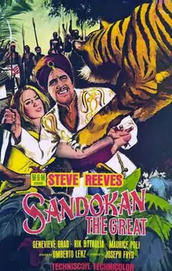 Sandokan the Great (Italian: Sandokan, la tigre di Mompracem) is a 1963 Italian adventure film, directed by Umberto Lenzi and starring Steve Reeves.[2][3] It is the first entry in a film series about Sandokan, the pirate-prince from Emilio Salgari's popular swashbuckler novels.