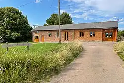 The manor house, known as Sandon Bury, stands to the south of the church. The current house there dates from 1661.[7] One of the barns in the farmyard at Sandon Bury appears to be a rare surviving medieval barn. Analysis by dendrochronology indicates that the barn's timbers were probably felled between 1266 and 1268.[8][9][10]