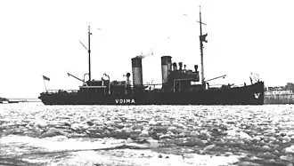 After the two large freight ships were completed, the workload went down. There were no new orders for new ships or rolling stock. In 1923 the company received two notable projects: one of them was a minor repair project on a shipwrecked merchant ship. The other one was for completing a semi-finished icebreaker, which had been started at Boecker & Co. shipyard in Tallinn. The Finnish state needed new icebreakers to ensure year-round access to its harbours, and had purchased the hull via John Nurminen company. The icebreaker was named Voima and completed and handed over to the state in 1924. The project was challenging, but the outcome was excellent; it demonstrated the company's capability to undertake demanding projects. However, after these projects the company again suffered a lack of work. Due to the poor situation, the company had to discontinue the lease contract for the new shipbuilding area and sell the buildings and equipment.[4]