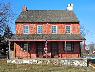 This historic structure was built between 1805 and 1806, and is a two-story, brick structure that measures thirty feet by thirty feet with Georgian/Federal design elements. It is four bays by two bays and has a one-story shed roof porch. Built expressly as a tavern, it never functioned as such because a license could not be obtained by its owner.[2]