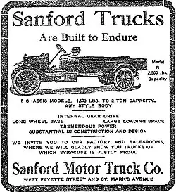 The Sanford-Herbert Motor Truck Company was founded in 1909 and manufactured trucks in Syracuse for over 30 years until 1939.