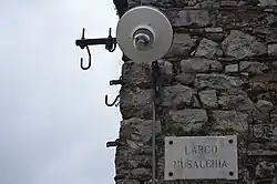 Is the mansion belonging to the Albanian noble Muzaka family, it was the seat of the Municipality of Santa Cristina Gela. It has been declared of historical interest and has recently been restored. It is of simple construction with two floors above ground, the façade on Largo Musacchia Street is simple, consisting of four doors with round arches and four balconies on the upper floor, and is rhythmically marked vertically by gray downspouts, while horizontally it is enclosed by a frame formed by the drips of the tiles. In the lower part of the block above the Magaseno house and in continuation of the Musacchia houses there is a small terrace with railings and masonry columns from which the rural landscape is visible. It currently houses the municipal library and is the venue for cultural events.