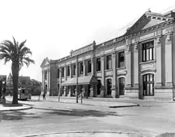![]() Santa Fe station building and a tram running on Gálvez Boulevard, c. 1940. | |