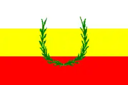 The flag is divided horizontally into three stripes; white at the top, yellow in the center and red at the bottom, and may be decorated with sugarcane stems.[32]