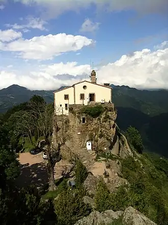 The Santuari de Bellmunt ('Sanctuary of Bellmunt') is a sanctuary in the municipality of Sant Pere de Torelló (Osona), which is located on top of the Serra of Bellmunt at 1246 m altitude. There is a viewpoint from where visitors can see the plain of Vic, the Pyrénées, the Ges Valley, and Bisaura. Along the sanctuary is a refuge and a restaurant, all built on the rock. It can be accessed on foot or by car from Sant Pere de Torelló, and from Vidrà only on foot. The image of the Lady of Bellmunt is a 22 cm painted statue of Alabaster.[1]