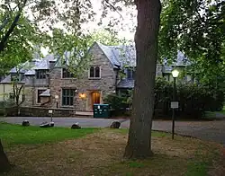 Political activism has played a role in forming the Sarah Lawrence community since the early years of the college. As early as 1938, students were volunteering in working-class sections of Yonkers, New York to help bring equality and educational opportunities to poor and minority citizens, and the Sarah Lawrence College War Board, organized by students in the fall of 1942, sought to aid troops fighting in World War II. During a time when the college's enrollment consisted of only 293 students, 204 signed up as volunteers during the first week of the War Board.[36] During the so-called McCarthy Years, a number of Sarah Lawrence's faculty members were accused by the American Legion of being sympathetic to the Communist Party, and were called before the Jenner Committee.[37] Since that time, activism has played a central role in student life, with movements for civil rights and against the Vietnam War in the 1960s and for student and faculty diversity in the 1980s. Also in the 1960s, students established an Upward Bound program for students from lower-income and poverty areas to prepare for college.[38] Theatre Outreach, the Child Development Institute, the Empowering Teachers Program, the Community Writers program, the Office of Community Partnership, and the Fulbright High School Writers Program are among the many programs founded since the 1970s to provide services to the larger community. In the late 1980s, students occupied Westlands, the main administrative building for the campus, in a sit-in for wider diversity. Students occupied Westlands again in 2016, in a sit-in supporting improved wages and safer working conditions for the college's recently unionized facilities workers. For many years, the college has been considered as being at the vanguard of the gay rights movement and many other progressive causes.