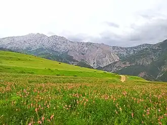 Sarkent State Nature Park (Kyrgyz: Саркент мамлекеттик жаратылыш паркы) is a national park in Leylek District of Batken Region of Kyrgyzstan established in June 2009.[1] The purpose of the park is conservation of the unique natural complexes and biodiversity, protection of rare and endangered flora and fauna, and extension of network of specially protected areas of Kyrgyz Republic. The area of the park is 39,999 hectares.[2] The park is located in the Turkestan Range, 42 km from the district center Isfana and in 177 km from the regional center Batken.[3]