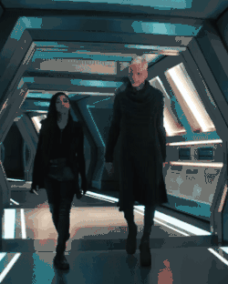 Writing in the The Verge, Devon Maloney draws contrasts between Saru, the characters Data and Worf on Star Trek: The Next Generation, and the shape-changing Odo from Star Trek: Deep Space Nine.[9] Maloney notes non-human officers—despite their qualifications—are often dismissed or sidelined by Starfleet. Saru’s cautious leadership style is framed not as a flaw, but as a contrast to the reckless impulsivity often rewarded in human counterparts.[9] "Saru is Kelpien. He thinks everything is malicious," human captain Philippa Georgiou, played by Michelle Yeoh, stated.[9] In the pilot episode, "The Vulcan Hello", Burnham undercuts a proposed idea by Saru—as his then-superior officer in front of their subordinates aboard the USS Shenzhou. He asks—again in front of their staff—after her "constant need to dismiss [his] ideas". Maloney highlights that Burnham and Saru's early conflicts undermined his ability to command their officers.[9] Despite Burnham's at times poor prior treatment of Saru, when they found themselves in a dangerous situation, he immediately endorsed that she should be fully trusted to resolve the matter; Maloney notes Kelpiens have a lesser level of ego than humans.[9]