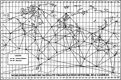 In optical triangulation, the satellite can be used as a very high target for triangulation and can be used to ascertain the geometric relationship between multiple observing stations. Optical triangulation with the BC-4, PC-1000, MOTS, or Baker Nunn cameras consisted of photographic observations of a satellite, or flashing light on the satellite, against a background of stars. The stars, whose positions were accurately determined, provided a framework on the photographic plate or film for a determination of precise directions from camera station to satellite. Geodetic positioning work with cameras was usually performed with one camera observing simultaneously with one or more other cameras. Camera systems are weather dependent and that is one major reason why they fell out of use by the 1980s.[3]: 51