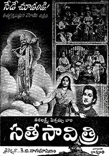 Sati Savitri is 1957 Indian Telugu-language Hindu mythological film, based on the life of Savitri and Satyavan directed by K. B. Nagabhushanam. It stars Akkineni Nageswara Rao, S. Varalakshmi, S. V. Ranga Rao with music composed by S. V. Venkatraman. It is produced by S. Varalakshmi under the Varalakshmi Pictures banner. The film was dubbed into Tamil language with the title Sathiyavan Savithri.[1][2]