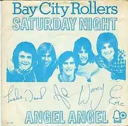 "Saturday Night" is a song recorded by the Scottish pop rock band Bay City Rollers, taken from their debut album Rollin' (1974). Written and produced by Bill Martin and Phil Coulter, it was originally released in June 1973 in the United Kingdom, followed by a North American release in August 1975. Despite a lack of commercial success in the United Kingdom, following its release in North America, it performed strongly on both the American and Canadian singles charts.