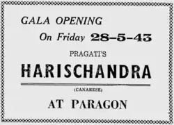 - ^ ""Harischandra"". The Indian Express. 29 May 1943. p. 4. Retrieved 12 April 2017.