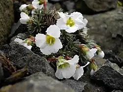 Saxifraga burseriana, called the early white-flowered saxifrage, is a species of flowering plant in the genus Saxifraga, native to the eastern Alps; Germany, Austria, Liechtenstein, Italy, and Slovenia.[2][3] Its cultivar 'Crenata' has gained the Royal Horticultural Society's Award of Garden Merit.[4]