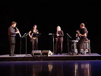 Saxophone quartets abound as amateur and professional ensembles as well as university-affiliated groups.[2] The most recent World Saxophone Congress, in 2015, hosted a competition specifically for saxophone quartets with a first prize of 4000 euros and a recital,[3] won by Keuris Saxophone Quartet.[4] Saxophone quartets also compete in, and have won, the Fischoff National Chamber Music Competition, which is the world's largest classical chamber music competition.