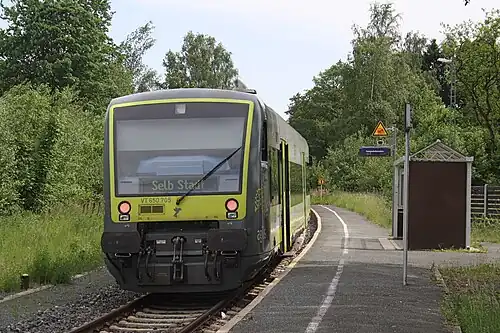 Schönwald (Oberfr) station is a railway station in the municipality of Schönwald, located in the Wunsiedel district in Bavaria, Germany.