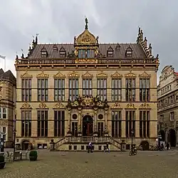 The Schütting, situated on the Marktplatz (market square) in Bremen, initially served the city's merchants and tradesmen as a guild house. In 1849, it became Bremen's chamber of commerce. Since 1973, it has been under monument protection.[1] It lies on the south site of the Bremen marketplaces directly across from the town hall.