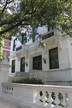 Morris Schinasi, who commissioned this mansion in 1909, was an Ottoman Jewish immigrant who came to the United States in 1890.[10] Having made his wealth in the cigar industry and married in 1903, he decided to build the mansion on Riverside Drive. At the time most mansions were being built along Park Avenue and Fifth Avenue, but there were predictions that the wealthy would build their extravagant homes along the quieter Riverside Drive. As this prediction never came to fruition, the Schinasi mansion remains the largest single-family residence along Riverside Drive.[3] Schinasi selected William Tuthill as the architect for the mansion, but the relationship was not a pleasant one. Tuthill later sued Schinasi for a sum of $5655.65.[3]