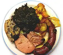 - Grünkohl with Kochwurst and Schweinebacke (a cured cut from a pig's head), sometimes with Pinkel