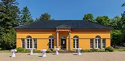 in the 19th century, under the Duchess Anna Carolina, the formal decoration of the garden was abandoned, and the green areas were redesigned, inspired by English gardens . The baroque structure was largely retained, so that the framing avenues and the path system of the old garden have been preserved to this day. The orangery was renewed and received its present form in 1827. It is a classicist building with five axes, which is unusual for the region, with a small portico in the center. The orangery is now used for art exhibitions and concerts.