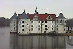 The history of today's castle grounds began in Schleswig in 1192, when the double monastery of St. Michael auf dem Berge was dissolved. The nuns then moved to the St. John's Monastery in Schleswig, which still exists today, while the monks left the place and went to Guldholm on Langsee. Between 1209 and 1210 the monks founded a new Cistercian monastery in Glücksburg. In the vicinity of the monastery was an older motte-and-bailey castle, parts of which have been preserved to this day. The so-called Ryd Abbey and the extensive estates were inhabited and managed by the monks in the following centuries. At the same time, the neighboring town Flensburg still had several castles, as well as the large, militarily important Duburg fortress, built in 1411. In the course of the Reformation, the Rüdekloster was secularized in 1538 and came into the possession of the Danish King Christian III in 1544. The monastery buildings served as the administrator's residence.[3] In the beginning of the 16th century, the condition of the Duburg fortress in Flensburg began to decline.[4]