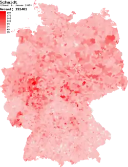Schmidt is a common German occupational surname derived from the German word "Schmied" meaning "blacksmith" and/or "metalworker". This surname is the German equivalent of "Smith" in the English-speaking world.