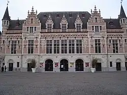 The Schouwburgplein (Theatre Square) is situated in the heart of the city of Kortrijk, Belgium, and is flanked by the municipal theatre (Stadsschouwburg) and several historic buildings. The rectangular square was formed after the demolition of the old Lakenhalle (Clothes Hall) (built in 1411), which was severely damaged by friendly fire in 1944.
