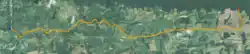 Satellite map of Schwaben Creek. The red dot is the stream's source and blue dot is its mouth. | |