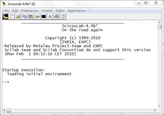 Screenshot of ScicosLab 4.4 beta 7 running under Windows 7 | |