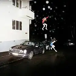 The cover is based around a photograph by Swedish artist Thobias Fäldt. The photograph features two women, Malin and Emma, seemingly jumping from a balcony.[37] The packaging for the release has been created by Brooklyn based studio Morning Breath, Inc., who also worked on the artwork for Daisy and "Mene".[38] The deluxe edition of the vinyl record came with a zine that included a poem.[14]