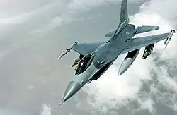 The Bosnian War was an international armed conflict that took place in Bosnia and Herzegovina between April 1992 and December 1995. The North Atlantic Treaty Organization (NATO) decided to intervene in the Bosnian War after allegations of war crimes against civilians were made by various media organizations. NATO military involvement primarily involved enforcement of a no-fly zone codenamed Operation Deny Flight to discourage Bosnian Serb military aircraft from attacking Bosnian government and Bosnian Croat forces.[8] In February 1994, Grady was involved in the Banja Luka incident where he, along with several other F-16 pilots, engaged Bosnian Serb jets who were in violation of the no-fly zone.[9] Later, as part of the 555th Fighter Squadron based at Aviano Air Base, Italy, he was piloting one of two F-16s patrolling the skies above Bosnia on June 2, 1995.[10]