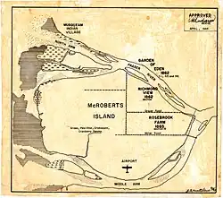 The name Sea Island has been credited to Colonel Moody, who surveyed the geography of the Lower Mainland and noticed that at high tide, the island was partially hidden by the sea.[3] It had previously been referred to as McRoberts' Island, after the first European settler on the island, Hugh McRoberts.[4]