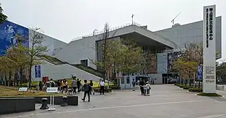 Sea World Culture and Arts Center is a waterfront situated multi-use culture and arts center within the greater Sea World development in Shekou, Shenzhen, China. The project is a joint venture between the state owned China Merchants Group and Great Britain's Victoria and Albert Museum.[1] It is designed by the Japanese architect Fumihiko Maki. Completed in 2017 the structure is built in two parts. The first part the "sculptural podium" contains the museum and retail stores and the second made up of "three cantilevered volumes' houses a theater, a restaurant and a "multi purpose hall".[2]