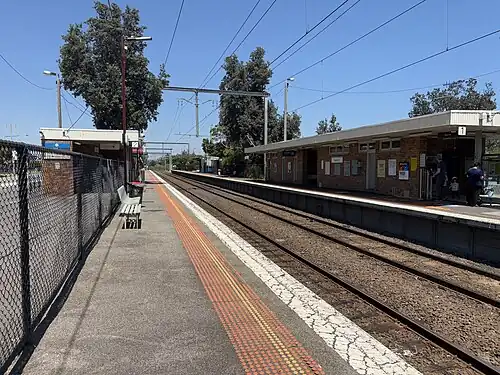 ![]() Southbound view from Platform 2, February 2025 | ||||||||||||||||||||||||||||||||||||||||||||||||||||||||||||||||||||||||||||||||||||||||