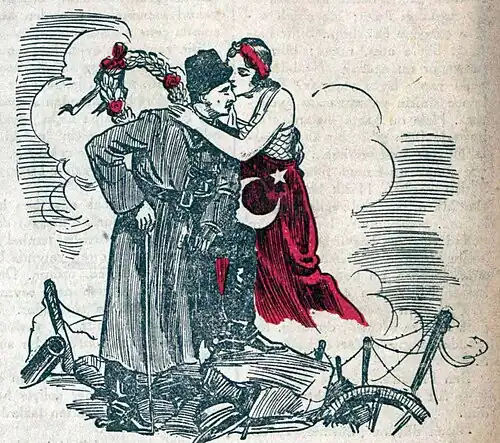Position observed at 6:30 p.m. from Metristepe. An enemy division, in all probability a rear - guard which since the morning has been in a position north of Gündüzbey is retreating in disorder as the result of an attack from our right. It is being closely followed up. In the direction of Hamidiye we are not in touch with the enemy and there is no fighting going on. Bozüyük is in flames. The enemy has abandoned the battlefield to us, leaving thousands of dead behind.