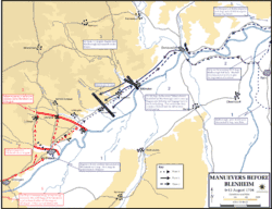 - ^ The village of Blindheim (Blenheim in English) lies on the Danube River, 16 km (10 mi) southwest of Donauwörth in Bavaria, southern Germany.