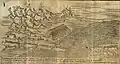 Paraguayan soldiers looting' allied base camp (here, sutlers' stores) at the Second Battle of Tuyutí, 3 November 1867. The flags denote the owners' nationalities e.g. Botica Italiana (José Ignacio Garmendia).