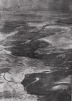 From the Ghoraniyeh crossing, a metaled road extended 6 miles (9.7 km) across the Jordan Valley to the Shunet Nimrin defile at the foot of the hills of Moab.[76][77] Here at Shunet Nimrin opposite the Ghoraniyeh bridgehead and crossing, the Ottoman Fourth Army's VIII Corps was strongly entrenched in positions, which controlled the main sealed road from Jericho to Es Salt and Amman and the Wadi Arseniyat (Abu Turra) track.[78][79][Note 13] The Ottoman Corps' main entrenchments ran north and south just to the west of Shunet Nimrin with the deep gorge of the Wadi Kerfrein forming their left flank while their right was thrown back in a half circle across the Wadi Arseniyat track to El Haud. Both flanks were protected by cavalry and the garrison was ordered to hold the strongly entrenched position of Shunet Nimrin at all costs. Their lines of communication to Amman ran through Es Salt and along the Wady Es Sir via the village of Ain es Sir.[50][74][78]