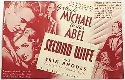 Second Wife is a 1936 American drama film directed by Edward Killy and starring Gertrude Michael, Walter Abel and Erik Rhodes. It was produced and distributed by RKO Pictures.