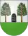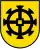 The blazon of the district coat of arms is Argent, a Lion rampant Gules crowned and armed Or on Coupeaux Vert.[3]
