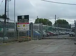 Selhurst Depot[10][11] is located to the east of Selhurst station, and occupies a triangle of land bordered on one side by the Victoria lines and on another by the London Bridge lines. It was built on the site of the former Croydon Common Athletic Ground, where Crystal Palace F.C. played Football League matches between 1920 and 1924.