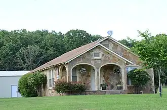 The Sellers House is a historic house at 89 Acklin Gap in rural Faulkner County, Arkansas, northeast of Conway. It is a single-story masonry structure, with a gabled roof, fieldstone exterior, and cream-colored brick trim. It has a projecting front porch with arched openings, and its roof has Craftsman-style exposed rafter ends. The house was built about 1940 by Silas Owens, Sr., a noted regional master mason. This house exhibits his hallmarks, which include herringbone patterns in the stonework, cream-colored brick trim, and arched openings.[2]