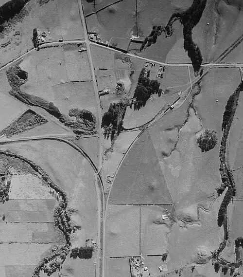 A small ballast pit was operated to the west of Sentry Hill station, with the first record dating from 1882 to provide road and railway metal for the district. The quality of metal from the pit was not of the best quality, but it was considered adequate in the absence of other sources at the time.[1] The bottom of the pit was around 55 feet above the water level of the Mangaraka Stream. By contrast, the railway bridge over the same stream was 31 feet above water level.