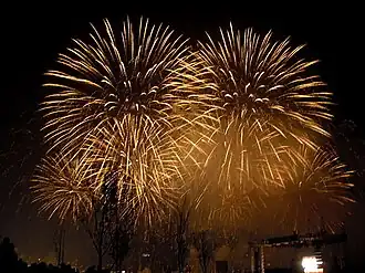 About 100,000 fireworks went off, and more than a million of viewers visited every year.[3] Seoul International Fireworks Festival is the typical festival in Korea. There are about 20,000 visitors at main event hall at Yeoido.[4] Moreover, there are about 100,000 visitors near Wonhyo Bridge, Hangang Bridge, Hangang Park Ichon Area and more places. In total, about 120,000 visitors enjoyed the festival.[5][6][7]