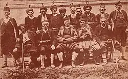 The Serbian leaders of the people of Herzegovina: Jovan Gutić, Simun Zečević, Ilija Stevanović, Trivko Grubačić, Prodan Rupar and Petar Radović, at the end of August and beginning of September 1874, met and decided to start preparing a rebellion.[4] They began collecting weapons and ammunition and establishing safe-places. With the assistance of Montenegro in the uprising, it was to begin in springtime 1875.[4] The group entered in talks with Montenegrin ruler Nikola I Petrović, but he was unwilling to break and risk the unreadiness of Russia in its war with the Ottomans.[4] The preparations continued; and in Bileća and Trebinje region, serdar Todor Mujičić, Gligor Milićević, Vasilj Svorcan and Sava Jakšić lead the revolt in these regions. Lazar Sočica led the Piva tribe in Old Herzegovina.[4]